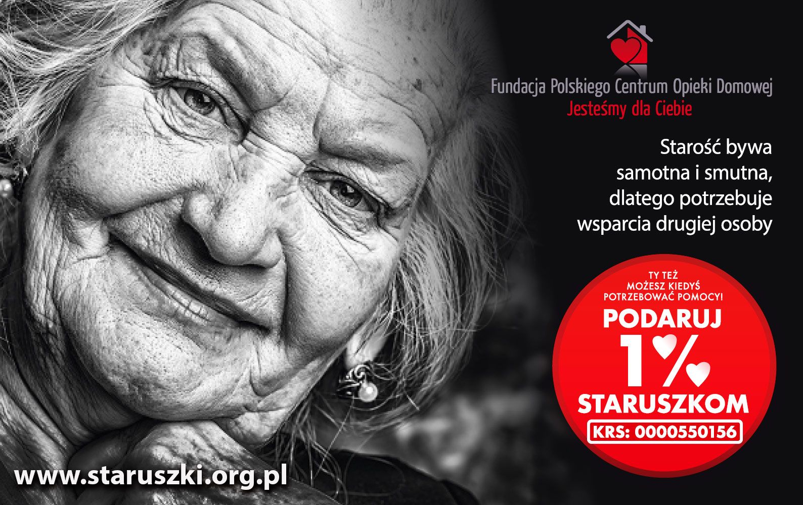 Brak wystarczających rozwiązań systemowych nie może zabierać potrzebującym staruszkom szansy na godne życie we własnym domu. Potrzeb społecznych jest wiele i ciężko przejść obojętnie nad losem dzieci, niepełnosprawnych i zwierząt. Staruszkowie są najmniej popularną grupą wśród potrzebujących. Fundacja Polskiego Centrum Opieki Domowej wspiera właśnie ich - niepotrzebne nikomu, bezbronne, nieporadne „stare dzieci” bez perspektywy na przyszłość! Dary od ludzi pozwalają na zapewnienie najbardziej potrzebującym niezbędnej opieki w domu, leków, środków higienicznych i opatrunkowych, rehabilitacji. W ten sposób możemy podarować również szacunek, czułość, bezpieczeństwo i godne odchodzenie z ziemskiego świata. Twój 1% to wielki dar.