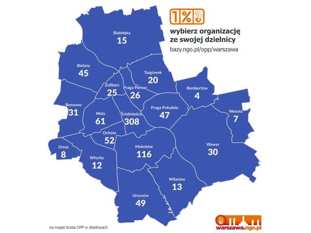 Znalezienie organizacji działającej blisko nas jest proste – wystarczy skorzystać z wykazu OPP na ngo.pl i wybrać jedną z 869 organizacji z Warszawy. Wykaz można przeszukiwać po dzielnicach.