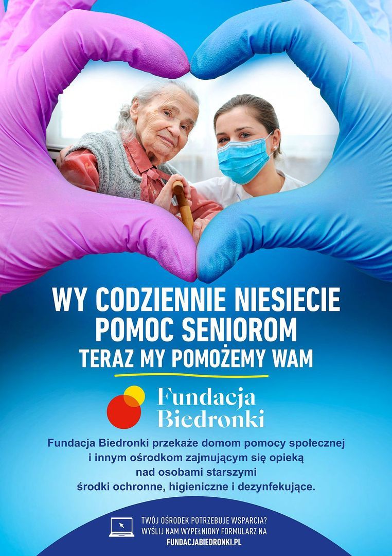 Uruchomiona w kwietniu br. Fundacja Biedronki aktywnie włącza się w walkę z pandemią. Pomocą Fundacji objęte zostaną domy pomocy społecznej, zakłady opiekuńczo-lecznicze, hospicja i inne ośrodki sprawujące opiekę nad osobami starszymi, które zgłoszą niedobory produktów ochrony dla personelu, środków higienicznych i dezynfekujących. Fundacja Biedronki przekaże te towary nieodpłatnie.