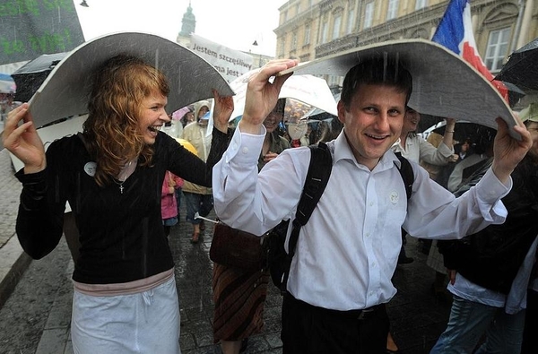 grzmotów kilka tysięcy osób maszeruje w tak dobrych nastrojach.