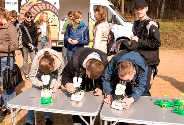Podstawionym autokarem uczniowie jadą na cały dzień do wybranego obszaru Natura 2000, gdzie pod czujnym okiem edukatora i przy pomocy specjalistycznego sprzętu badają i podglądają przyrodę.