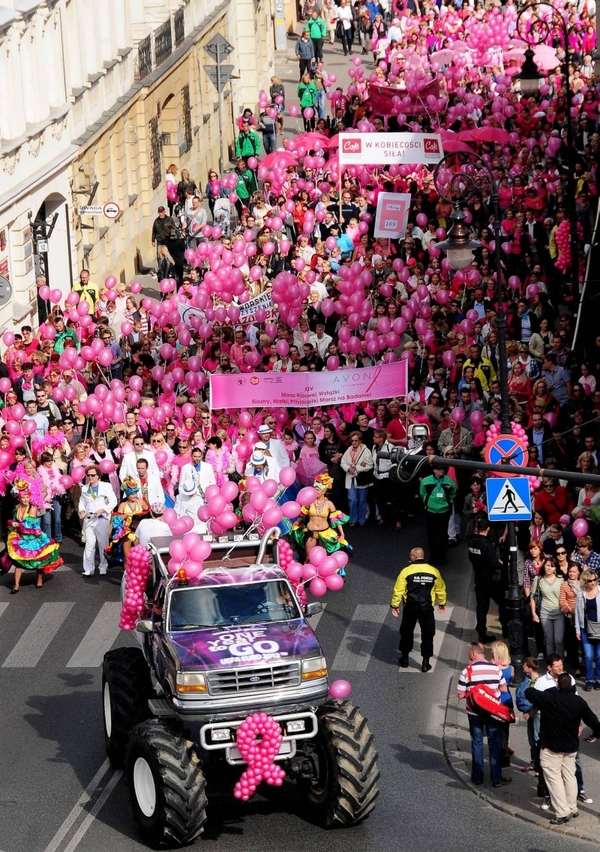 Tuż po godzinie 12:00 spod Hotelu Bristol na Krakowskim Przedmieściu wyruszyła kolorowa parada. Jak co roku dominował kolor różowy – różowe baloniki, parasolki, koszulki i szale czy przypięte różowe wstążki. W ten sposób uczestnicy manifestowali poparcie dla kampanii. Na czele Marszu jechały harley’ówki ze Stowarzyszenia Amazonek, tancerki w egzotycznych strojach, a rytm całemu korowodowi nadawał zespół bębniarzy.