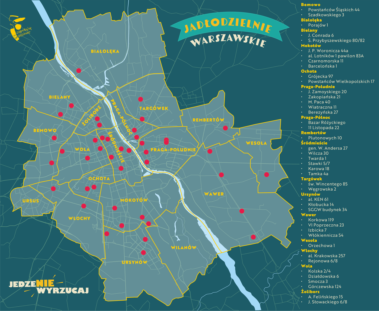 Miasto Stołeczne Warszawa poza prowadzeniem zbiórek na targowiskach podejmuje wiele działań zapobiegających marnowaniu jedzenia. Stale powiększana jest sieć jadłodzielni. Wydawane są publikacje dla mieszkańców oraz personelu gotującego w szkołach. Na ostatnim Ekopikniku odbyły się warsztaty kulinarne, uczące w jaki sposób gotować, żeby nie marnować żywności.