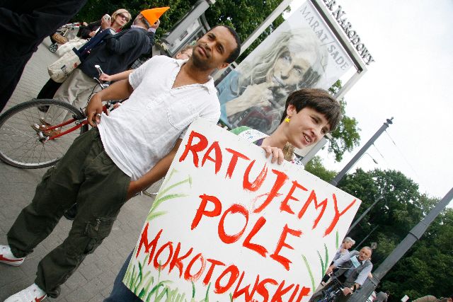 W pewnym momencie ktoś rzucił hasło: - Idziemy na sesję Rady! Powiemy im, jakie jest nasze stanowisko. Kolorowy korowód protestujących ruszył z Placu Bankowego w stronę Pałacu Kultury i Nauki. Tadek Markowski krzyczał do przechodniów: - Chodźcie z nami idziemy upomnieć się o nasze Pole! Radny czeka 200 metrów stąd! Możesz z nim osobiście porozmawiać!
