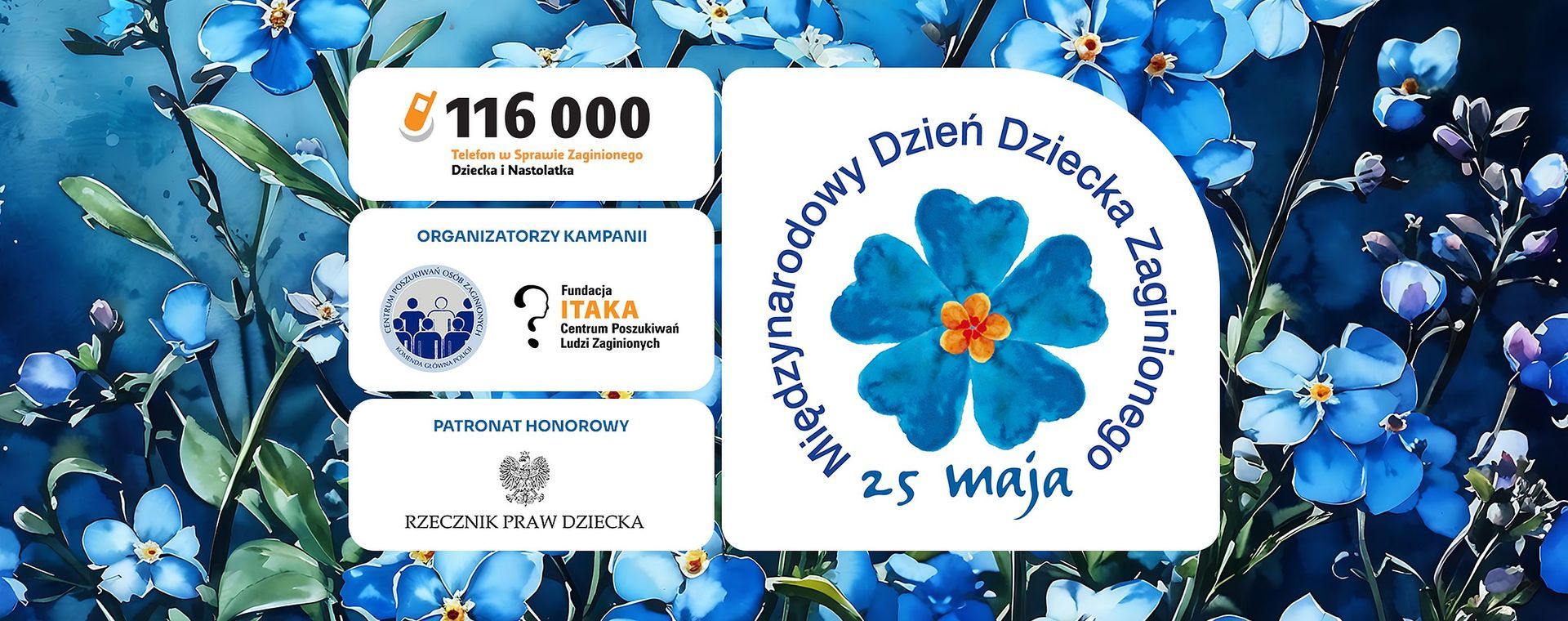 Symbolem tego dnia jest kwiat niezapominajki, a co za tym idzie, kolor niebieski. Dlatego w sobotę, dnia 25 maja Warszawa rozświetli się na niebiesko, a już dzień wcześniej na ekranach w warszawskich autobusach, w metrze oraz na zewnętrznych ekranach w przestrzeni miejskiej pojawią się grafiki z numerem 116 000 - Telefonem w Sprawie Zaginionego Dziecka i Nastolatka oraz kwiatami niezapominajki. W akcję włączyło się wielu Partnerów, którzy udostępnili swoje powierzchnie nieodpłatnie, aby okazać solidarność rodzinom zaginionych dzieci a także pomóc w rozpowszechnieniu informacji o Międzynarodowym Dniu Dziecka Zaginionego.