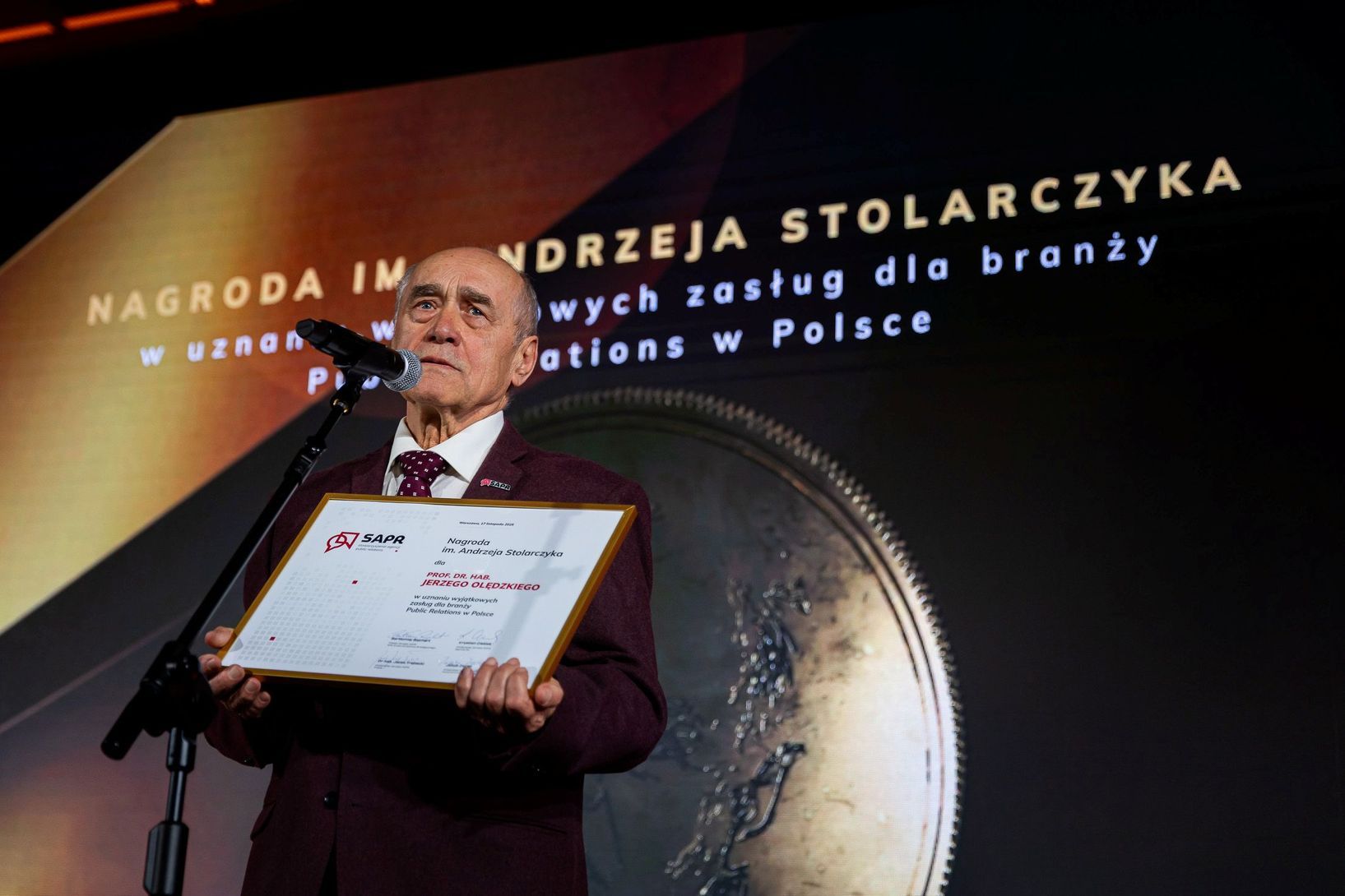 Podczas gali przyznano także Nagrodę im. Andrzeja Stolarczyka, wyróżnienie dla osób o wyjątkowym wkładzie w rozwój branży public relations w Polsce. W tym roku uhonorowano nią prof. Jerzego Olędzkiego – wieloletniego wykładowcę, wybitnego teoretyka komunikacji i mentora wielu pokoleń specjalistów PR. Prof. Olędzki w latach 1970–2016 był związany z Uniwersytetem Warszawskim, gdzie kierował Zakładem Komunikacji Społecznej i Public Relations na Wydziale Dziennikarstwa i Nauk Politycznych UW. Jako opiekun ponad tysiąca magistrantów i promotor kilkudziesięciu doktoratów, profesor Jerzy Olędzki przez dziesięciolecia kształtował standardy etyki i profesjonalizmu w komunikacji społecznej.