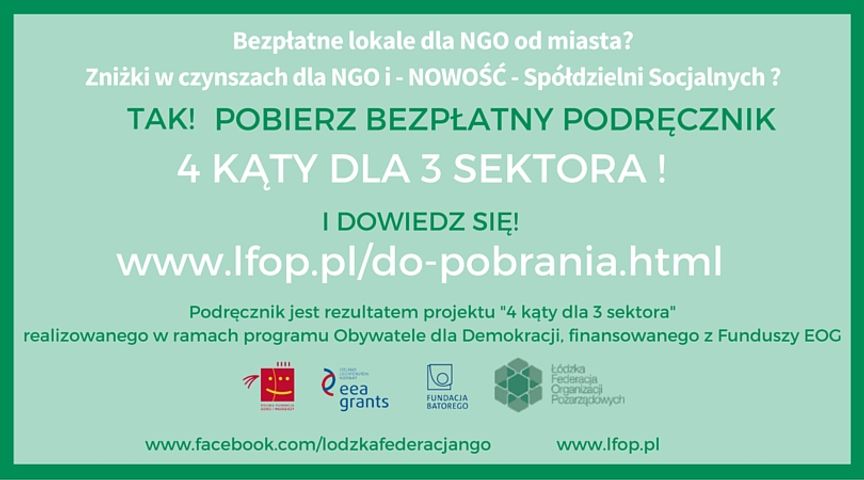 Podręcznik jest rezultatem projektu "4 kąty dla 3 sektora", realizowanego przez Łódzką Federację Organizacji Pozarządowych, w ramach programu "Obywatele dla Demokracji", finansowanego z Funduszy EOG.