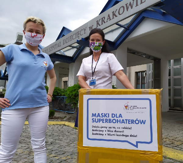 Zespół Fundacji Ronalda McDonalda przekazał kolejną partię środków ochrony osobistej dla największych szpitali pediatrycznych w Polsce. Maski trafiły do Szpitala Pediatrycznego Warszawskiego Uniwersytetu Medycznego i Uniwersyteckiego Szpitala Dziecięcego w Krakowie. Od początku trwania epidemii Fundacja podarowała łącznie 44 000 masek największym szpitalom pediatrycznym w Polsce.