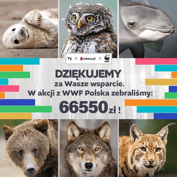 "Gazeta Wyborcza" podsumowała specjalną akcję realizowaną wspólnie z WWF Polska. Dzięki czytelnikom, którzy zamawiali prenumeratę cyfrową dziennika na stronie Wyborcza.pl/wwf, aż 66 550 zł zostanie przekazanych Fundacji WWF Polska na pomoc zagrożonym gatunkom zwierząt.