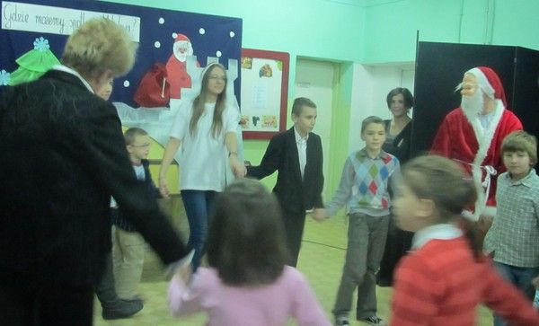 Rozśpiewane było to spotkanie. Wychowankowie prezentowali swoje umiejętności aktorskie, wzięli udział w interaktywnej audycji muzycznej prowadzonej przez Małgorzatę Łazowską. . „Święty Mikołaj nocą wędruje, w okna zagląda i nasłuchuje…” – śpiewały dzieci.
