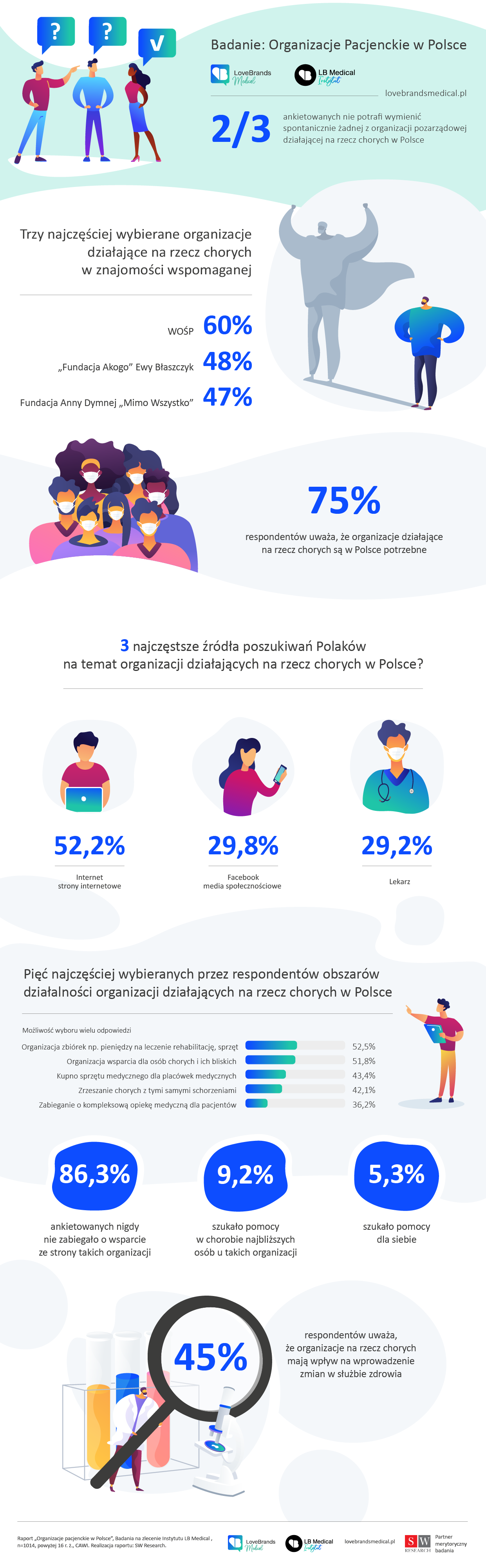 – To, że Polacy rzadko zwracają się po pomoc do NGOsów nie wynika z ich niechęci, a raczej braku świadomości, oraz wiedzy jakiego wsparcia mogą oczekiwać. Jako społeczeństwo nie mamy też świadomości na temat istnienia konkretnych organizacji. W Polsce jest bardzo wiele stowarzyszeń, fundacji, które zrzeszają pacjentów i zajmują się: działaniami edukacyjnymi, wsparciem dla chorych i ich rodzin właściwie w każdej chorobie, nawet tej najrzadszej. Niejednokrotnie odciążają nasz system opieki medycznej. Ich rola jest nieoceniona – mówi Head of LoveBrands Medical, ekspert Instytutu LB Medical, Marta Domańska. I dodaje: – Badanie które przeprowadziliśmy pokazuje, że liderzy tych organizacji powinni przywiązać większą uwagę do budowania marki. Prowadzenie skutecznych działań self PR, pozwala rozwijać się organizacji. Łatwiej można pozyskiwać środki na działanie, angażować nowych członków. Działać na większą skalę, docierając do szerszego społeczeństwa oraz mieć realny wpływ na politykę zdrowotną w naszym kraju.