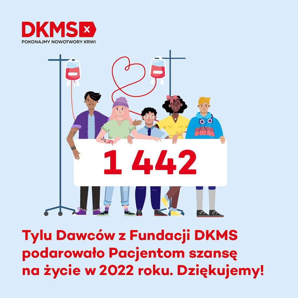 Od początku działalności Fundacji DKMS już 11 458 dawców faktycznych dało szansę na życie swoim „bliźniakom genetycznym” z Polski i świata. W 2022 roku do donacji przystąpiło 1442 dawców, a krwiotwórcze komórki macierzyste zostały pobrane dla pacjentów z Polski, USA, Niemiec, Francji, Włoch, Wielkiej Brytanii, ale też tak odległych zakątków, jak m.in. Argentyna, RPA, Nowa Zelandia czy Urugwaj.