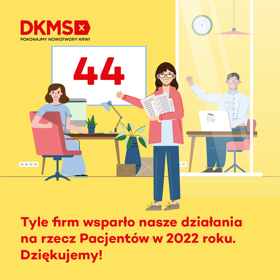 W działania na rzecz idei dawstwa szpiku i pomocy pacjentom chorym na nowotwory krwi włączali się potencjalni i faktyczni dawcy szpiku, wolontariusze, ale także tysiące darczyńców. Co roku Fundację DKMS finansowo wspiera stałe grono darczyńców, a w 2022 dołączyło do niego wiele nowych osób, chcących nieść pomoc potrzebującym pacjentom. W ubiegłym roku ponad 20 000 darczyńców indywidualnych oraz 44 firmy wsparły fundację, przekazując łączną kwotę 2 970 000 zł. To przekłada się na tak liczne działania Fundacji DKMS oraz realizację celów statutowych.