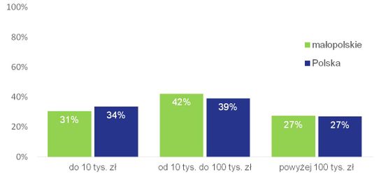 Budżety organizacji w Małopolsce i całej Polsce w 2014 roku nie różniły się znacząco. W małopolskim sektorze było o 3 punkty procentowe mniej stowarzyszeń i fundacji o najniższych przychodach (do 10 tys. zł rocznie), a odpowiednio więcej NGO o przychodach między 10 tys. a 100 tys. zł (42% stosunku do 39% w całym kraju).