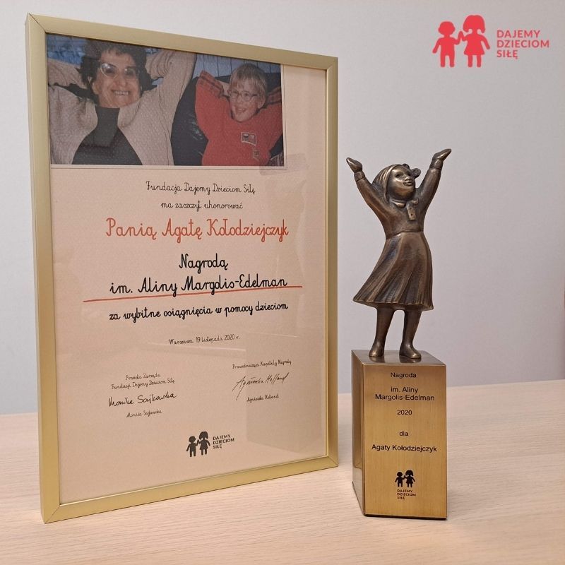 W tym roku do Nagrody im. Aliny Margolis-Edelman zgłoszono ponad 40 osób, które podobnie jak Patronka Nagrody angażują się w pomoc dzieciom i są oddane ich sprawom – mówi Maria Keller-Hamela, wiceprezeska Fundacji Dajemy Dzieciom Siłę i członkini Kapituły Nagrody. Decyzją Kapituły, której przewodniczy Agnieszka Holland, tytuł laureatki, statuetkę i nagrodę pieniężną w wysokości 5 tysięcy złotych otrzymała Pani Agata Kołodziejczyk – dodaje Keller-Hamela.