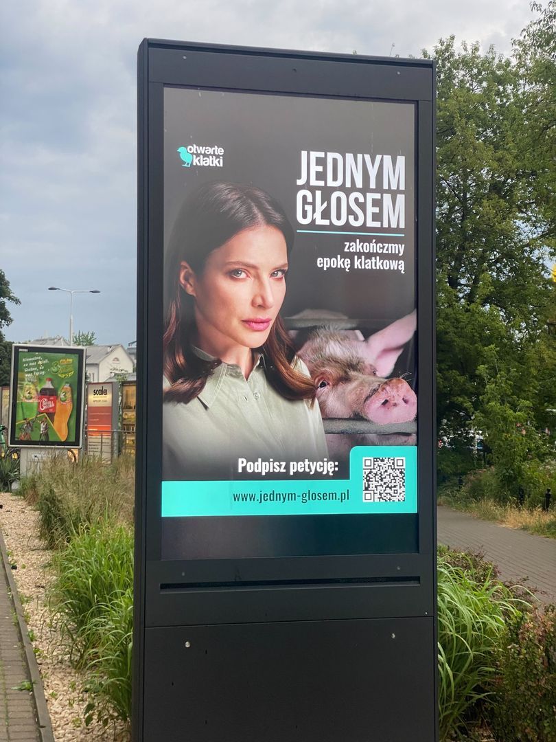 Kampania outdoorowa jest kolejną odsłoną projektu „Jednym Głosem”, w ramach której znane osoby udzielają swojego głosu, aby zebrać jak najwięcej podpisów pod petycją do Ministerstwa Rolnictwa o poparcie unijnego zakazu chowu i hodowli zwierząt w klatkach. Autorką zdjęć użytych w kampanii jest znana fotografka gwiazd Marta Wojtal. Citylighty z wizerunkiem Agnieszki Woźniak-Starak i Anny Dereszowskiej można zobaczyć w 78 lokalizacjach w Warszawie, m.in. na Al. Solidarności, ul. Marszałkowskiej, Al. Jerozomiskich, czy na Al. Jana Pawła II.