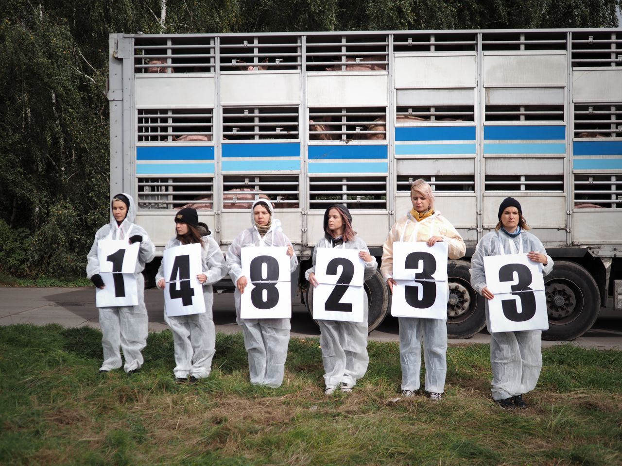 Aktywistki stanęły przy jednej z ubojni w Polsce i uruchomiły symboliczny licznik. Licznik, który działał przez godzinę, w obecności kolejnych ciężarówek wjeżdżających na teren ubojni. Aktywistki przekładając kolejne cyfry licznika odmierzały liczbę zabijanych w Polsce zwierząt. Po upływie godziny licznik wskazał wartość 148 233 – tyle zwierząt lądowych zabija się w Polsce, co godzinę (nie wliczając w to ryb, gdyż liczy się je w tysiącach ton).