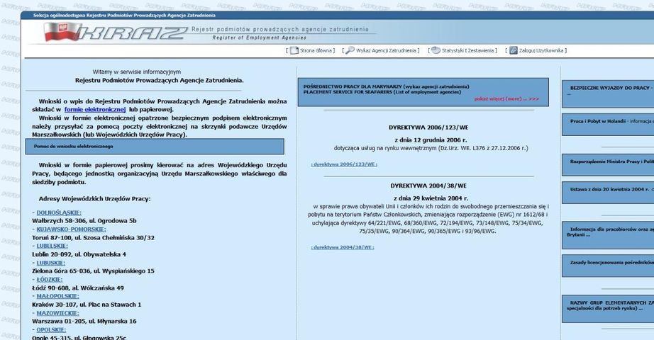 16 października 2014 w KRAZ znajdowało się dokładnie 5044 wpisów – najwięcej agencji zatrudnienia zarejestrowano na Mazowszu (1035) i Wielkopolsce (621), a najmniej na Podlasiu (56) i w Świętokrzyskiem (86). Agencja zatrudnienia – ten termin może brzmieć nieco myląco, bo wśród zgłoszonych podmiotów i instytucji można znaleźć szkoły wyższe, firmy produkcyjne, handlowe i usługowe, czy też organizacje dobroczynne. Rekordów z „fundacja” w nazwie było 98, a stowarzyszeń – 70, jednak Ministerstwo Pracy i Polityki Społecznej, zapytane o liczbę organizacji pozarządowych zgłoszonych do rejestru, podaje liczbę 235 podmiotów. Tak czy inaczej, jest to 3–5% wszystkich zarejestrowanych podmiotów.