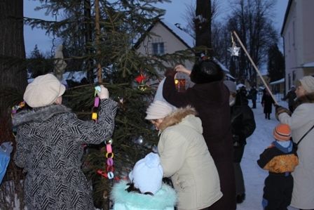 Kulminacyjnym wydarzeniem było ozdabianie choinki stojącej tuż obok kościoła. Ręcznie wykonane bombki i łańcuchy a także inne ozdoby zawisły na bożonarodzeniowym drzewku. Największą frajdę miały dzieci, które z radością podziwiały swoje prace. Pomimo niewielkich problemów z podłączeniem do prądu choinka wyglądała przepięknie. Nie zapomniano także o wiewiórkach i ptaszkach dla których powieszono słoninę i orzechy włoskie. Dodatkowym oświetleniem choinki i najważniejszych budynków Sobieszowa zajął się organizator Karkonoskiego Festiwalu Światła LBS s.c. Partner Philipsa.