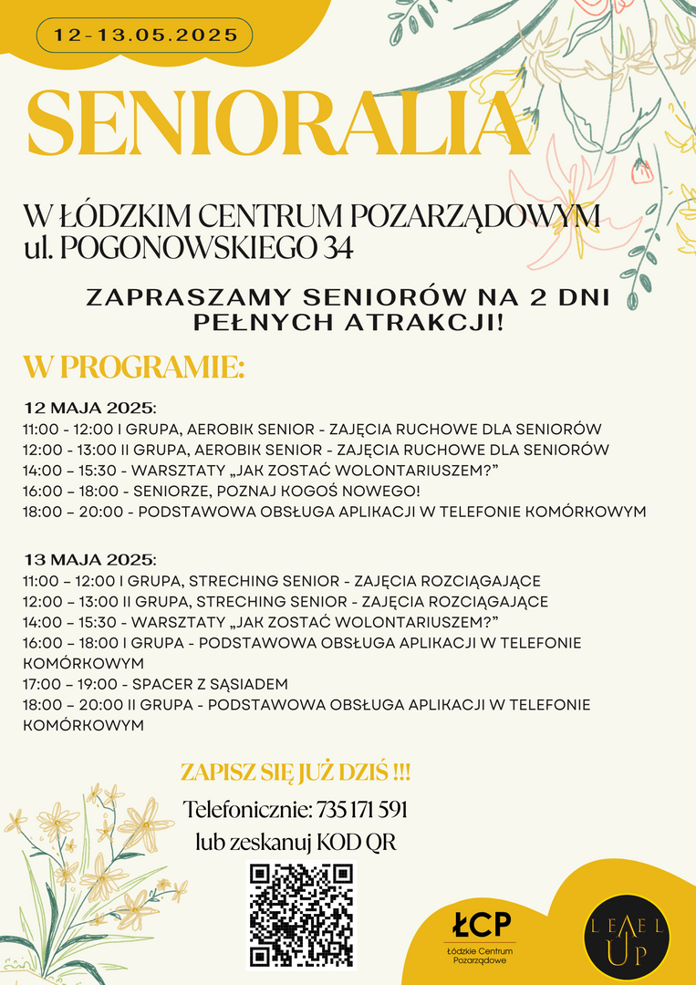W dniach 12–13 maja 2025 r. zrealizowaliśmy wyjątkową inicjatywę „Aktywni Seniorzy”, która miała na celu aktywizację osób starszych poprzez udział w różnorodnych działaniach rozwijających ciało, umysł i relacje społeczne. Wydarzenie spotkało się z dużym zainteresowaniem – łącznie wzięło w nim udział 57 seniorów, którzy z entuzjazmem uczestniczyli w zaplanowanych zajęciach.