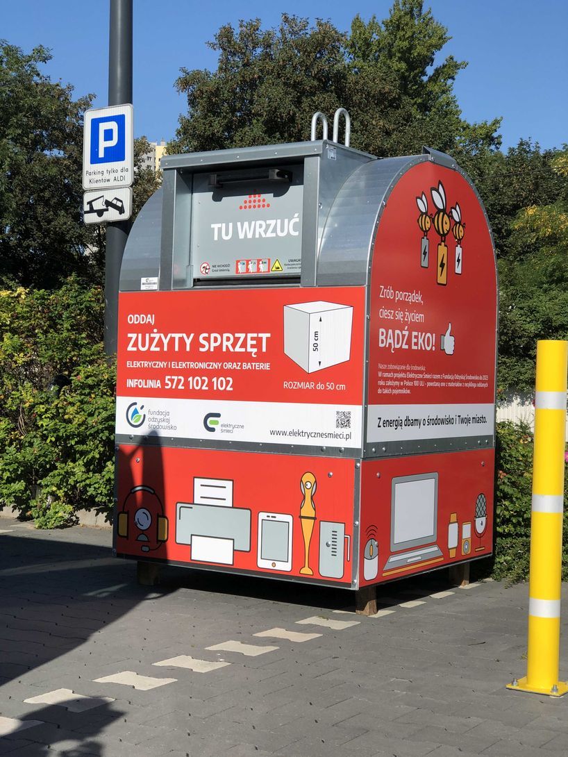 Nowoczesne, czerwone pojemniki na zużyty sprzęt elektryczny i elektroniczny znajdą się przed sklepami sieci ALDI w Będzinie, przy Al. H. Kołłątaja 110; w Chorzowie przy ul. S. Batorego 56; w Dąbrowie Górniczej przy ul. Przybylaka 2 oraz w Katowicach przy ul. 1 Maja 31 i K. Woźniczki 15a.