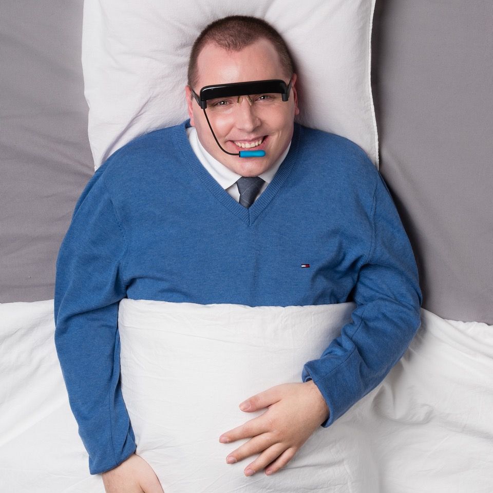 Pomocną dłoń wyciągnęła do Krzysztofa Fundacja Leżę i Pracuję, która najpierw zaproponowała mu staż, a później pracę. Poruszając jedynie głową, dzięki specjalnym okularom Glassouse, Krzysztof pracuje przy komputerze jako copywriter i obsługuje systemy zarządzania treścią w serwisach internetowych.