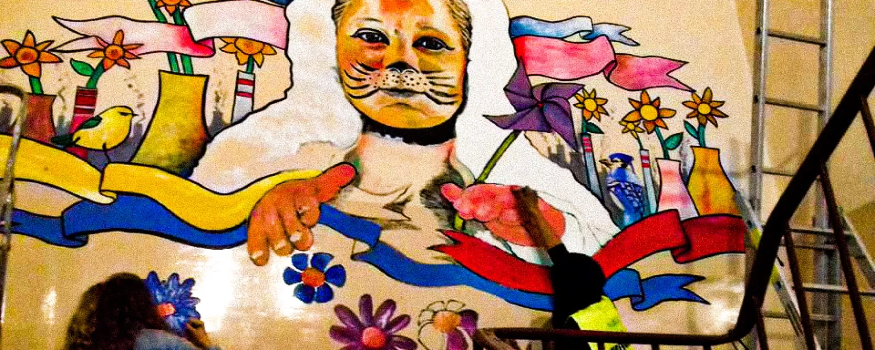 W tym samym czasie gościliśmy w Imielinie Climate Pilgrimage – pielgrzymkę klimatyczną, w tym braci: negocjatora w ONZ – Yeba i artystę – AG Saño z Filipin. To było w Mikołaja, zorganizowaliśmy wtedy koncert i rozmawialiśmy z pielgrzymami klimatycznymi, którzy szli pieszo z Włoch na COP24. Byłam zaskoczona ich determinacją. Następnego dnia zorganizowaliśmy spotkanie pielgrzymów z dziećmi i młodzieżą szkoły podstawowej i gimnazjum w Imielinie. Pielgrzymi opowiadali o tajfunach na Filipinach, które zabrały ich rodziny, o anomaliach pogodowych, wysychaniu zbiorników wodnych, o tym, dlaczego pielgrzymują. Dzieci słuchały jak zaczarowane, a potem wspólnie z AG Saño namalowały na ścianie w szkole mural klimatyczny.