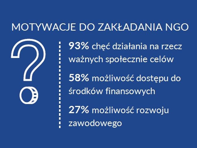 Powodów do założenia organizacji pozarządowej może być mnóstwo, począwszy od idealistycznych, stawiających sobie za cel zmienianie świata na lepsze, przez osobiste, biorące pod uwagę sytuację życiową założycieli, po czysto praktyczne, uwzględniające różne możliwości wynikające z danej formy prawnej. W badaniu „Kondycja sektora organizacji pozarządowych w Polsce 2015” Stowarzyszenie Klon/Jawor podjęło próbę przyjrzenia się temu tematowi. Liderzy organizacji pozarządowych zostali zapytani o motywacje stojące za założeniem ich organizacji (oczywiście, o ile je znali).