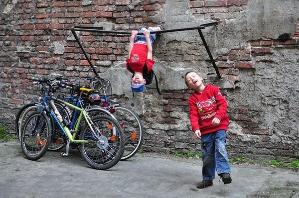 – W sąsiedztwie tej działki znajduje się opustoszały budynek. Chcieliśmy zorganizować tam warsztat rowerowy dla młodzieży z Pragi. Chłopcy mieliby zajęcie i przy okazji mogliby parę groszy zarobić wypożyczając rowery. Niestety, z tych planów trzeba było zrezygnować – mówi M. Happach i wyjaśnia: – Po wielu miesiącach wymiany dokumentów poinformowano nas, że budynek jest w stanie niepozwalającym na eksploatację. Gdy chcieliśmy rzucić na niego okiem osobiście, powiedziano nam, że jest tak niebezpieczny, że już nikt nie może do niego wejść – dodaje. – Jedyne, co mogliśmy zrobić, to prowizorycznie podzieliliśmy przestrzeń namalowanymi liniami oraz wprowadziliśmy elementy zieleni. Dzięki temu chociaż w ten sposób różni mieszkańcy zyskali swój kawałek tego podwórka.