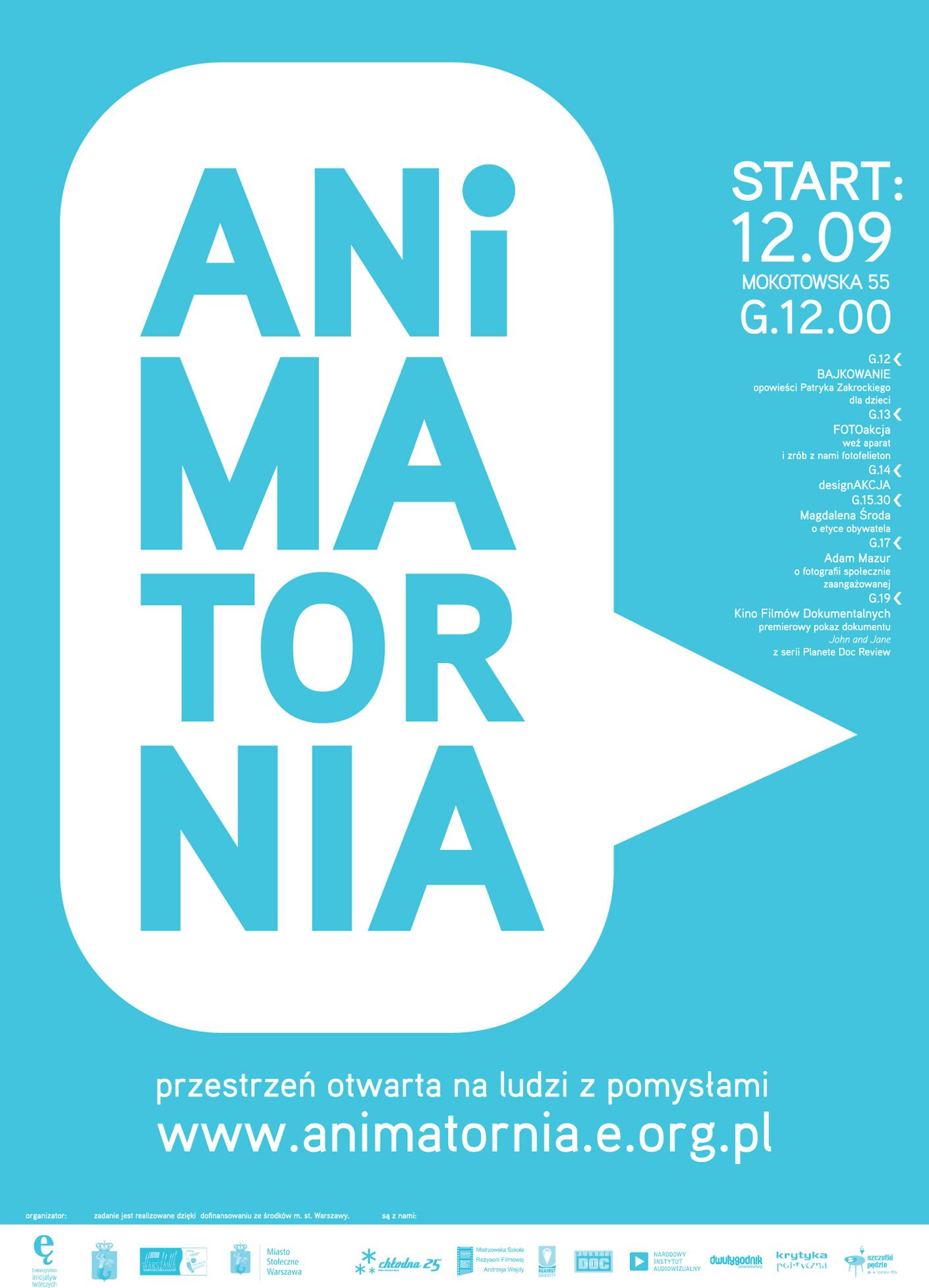 Animatornia to przestrzeń: filmu, fotografii i działań intermedialnych, otwarta na pomysły warszawiaków niezależnie od ich wieku, czy dotychczasowego zaangażowania w życie kulturalne miasta.