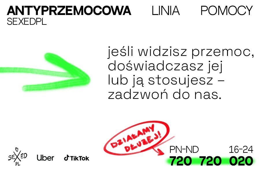 Uber Polska, Tiktok, Agora, Ztm Warszawa, Clear Channel Oraz Helios wspierają działania Antyprzemocowej Linię Pomocy Sexedpl