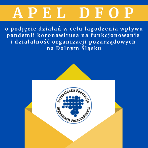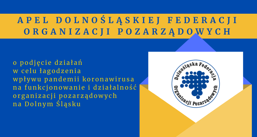 Dolnośląska Federacja Organizacji Pozarządowych wystosowała apel o podjęcie działań w celu łagodzenia wpływu pandemii koronawirusa na funkcjonowanie i działalność organizacji pozarządowych na Dolnym Śląsku.