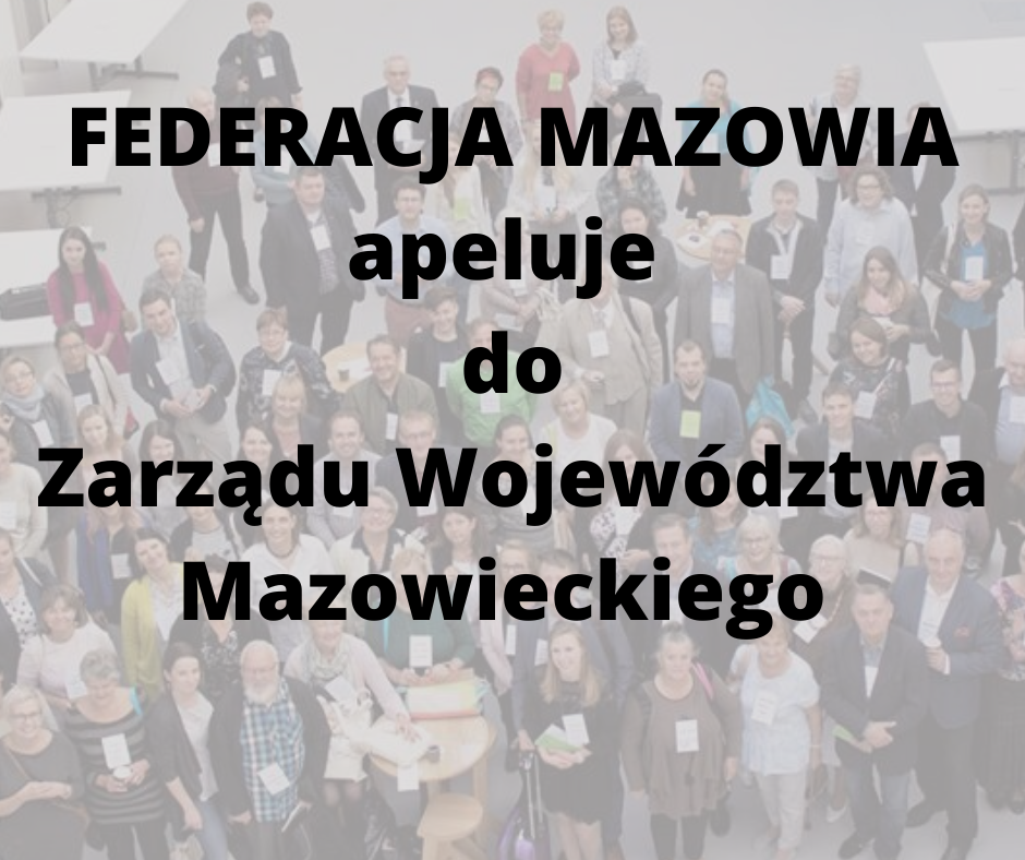 Federacja Mazowia apeluje do Zarządu Województwa Mazowieckiego, aby w obliczu obecnej sytuacji podjęte zostały kroki, które pozwolą organizacjom pozarządowym na prowadzenie swojej działalności, w tym o jak najszybsze rozstrzygnięcia otwartych konkursów ofert na realizację zadań publicznych oraz po przyznaniu dofinansowania wydawanie zgód na dokonywanie zmian w ofertach.