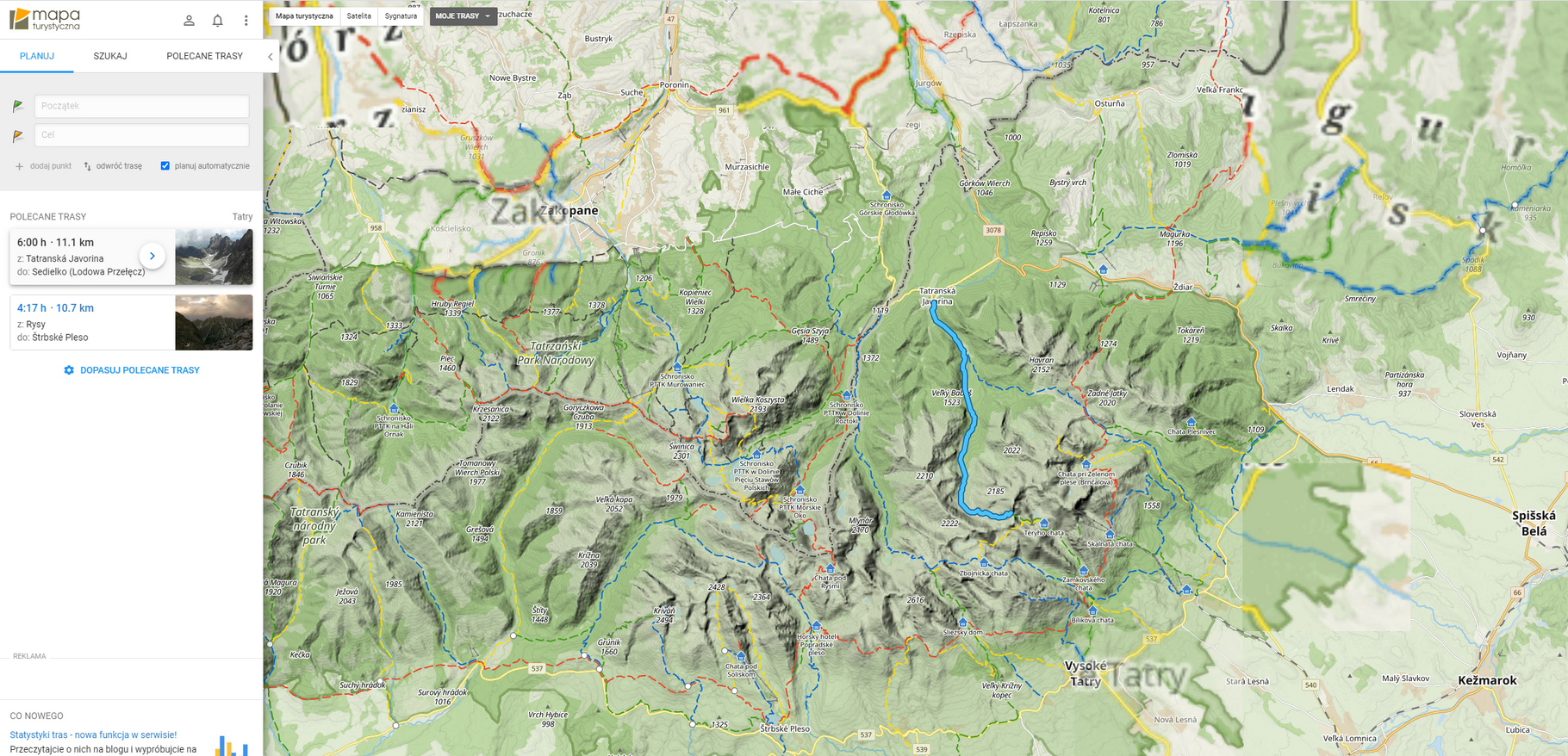 Moje dwie ulubione aplikacje, których używam na szlakach pieszych i rowerowych to Locus Maps i Mapy Turystyczne. Mapy Turystyczne posiadają bardzo dobrze skatalogowane i opisane trasy górskie, wraz z prognozowanym czasem przejścia. Znajdziemy w nich szlaki, schroniska turystyczne czy miejsca szczególne, które mogą zaciekawić pieszego turystę. Mapy Turystyczne pozwalają na pobranie wycinka trasy off-line, dzięki czemu mamy pewność, że nie zostaniemy zaskoczeni na szlaku, nawet gdy nie będzie dostępu do sieci.