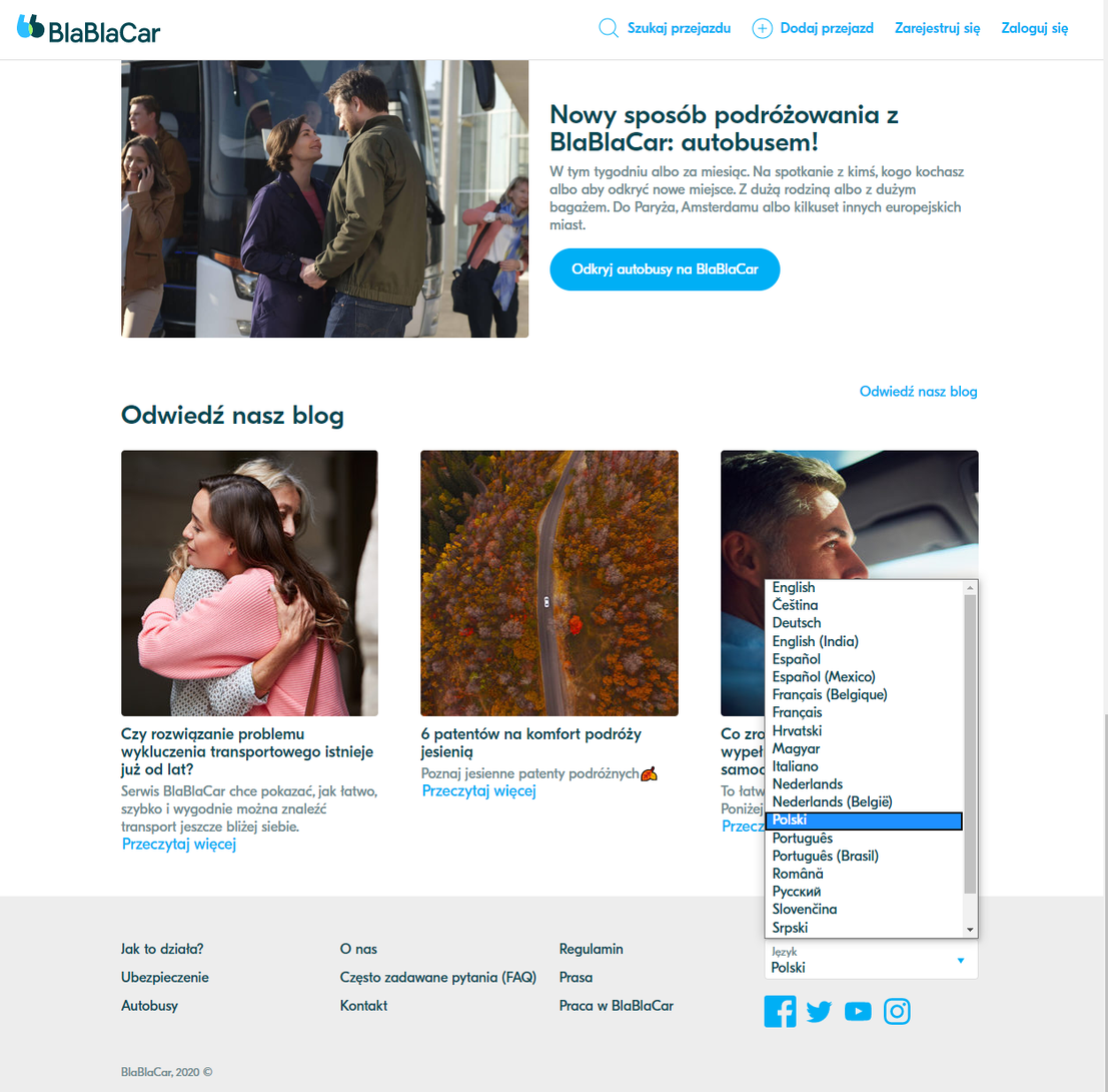 Jeżeli mamy doświadczenie w dzieleniu z kimś pojazdu, pomocny może okazać się Blablacar, który bardzo sprawnie działa, jeżeli chodzi o rideshare'ing na terenie Polski. Co ciekawe, Blablacar jest aplikacją międzynarodową, dzięki czemu korzystać z niej możemy również poza granicami naszego kraju. Wystarczy zmienić tylko ustawienia językowe, aby skorzystać z siatki podwózek w ramach kraju, w którym się znajdujemy.