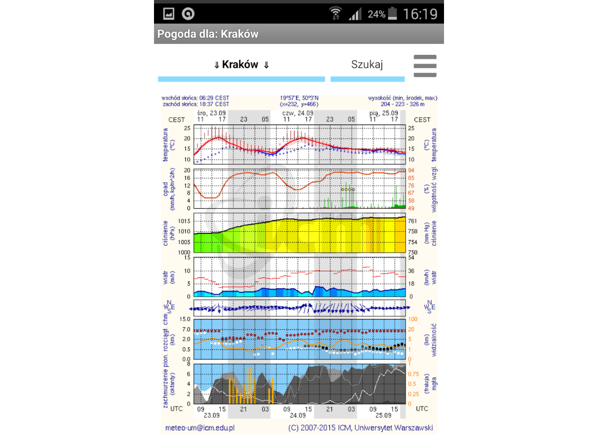 Jedną z najpopularniejszych jest AccuWeather, która przeciętnego użytkownika powinna zadowolić prostym interfejsem i dokładnością przepowiadania pogody. Jeżeli jednak nasza wyprawa górska lub żeglowanie stoi pod znakiem zapytania, warto sięgnąć po dokładniejszą prognozę. Jedną z najlepszych aplikacji do prognozy pogody jest moim zdaniem Meteo ICM, stworzona przez Interdyscyplinarne Centrum Modelowania Matematycznego i Komputerowego UW. Aplikacja na początku może odstraszać skomplikowanymi wykresami, jeśli jednak poświęcimy trochę czasu analizie trendów i nauczymy się je czytać, z czasem nauczymy się prognozować pogodę z niezwykłą dokładnością nawet na kilkadziesiąt godzin do przodu.