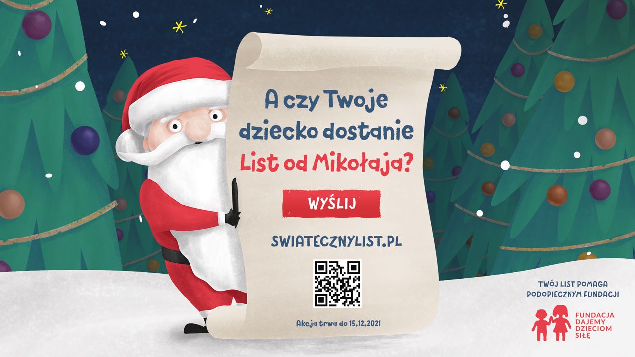 Akcja zamawiania spersonalizowanych listów od Świętego Mikołaja odbywa się już po raz ósmy, a po raz pierwszy również we współpracy z galerią handlową. Otrzymanie listu od „Świętego” jest dla mniejszych i większych adresatów miłym i ważnym elementem oczekiwania na Boże Narodzenie, natomiast dla podopiecznych Fundacji Dajemy Dzieciom Siłę stanowi szansę na szybsze wsparcie terapeutyczne, psychiatryczne czy prawne. Całkowity dochód z akcji zostanie przeznaczony na pomoc dzieciom pokrzywdzonym przemocą i wykorzystywaniem seksualnym.