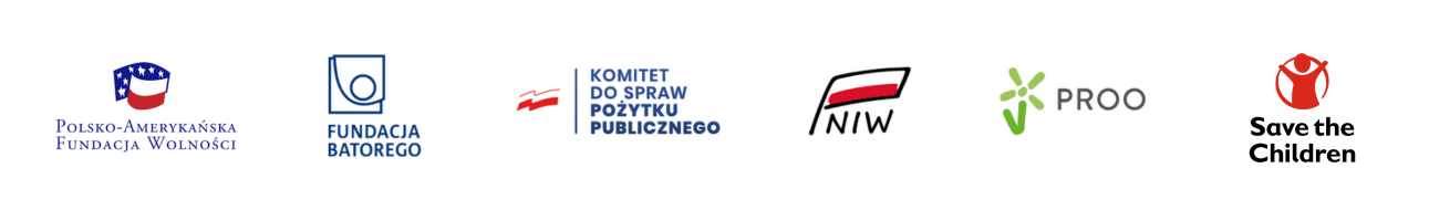 Badanie prowadzimy dzięki wsparciu Polsko-Amerykańskiej Fundacji Wolności, Fundacji im. Stefana Batorego, Narodowego Instytutu Wolności – Centrum Rozwoju Społeczeństwa Obywatelskiego oraz Save the Children Polska.