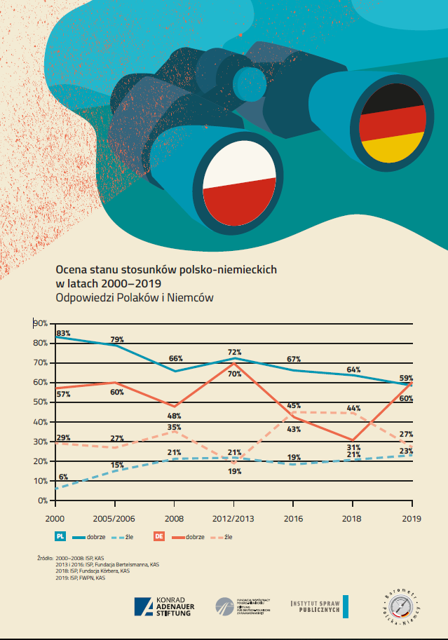 Badanie pokazuje, że Polacy i Niemcy podobnie oceniają obecnie stan stosunków polsko-niemieckich: 59% Polaków i 60% Niemców twierdzi, że relacje są dobre, z kolei 23% Polaków i 27% Niemców postrzega ich stan jako zły.