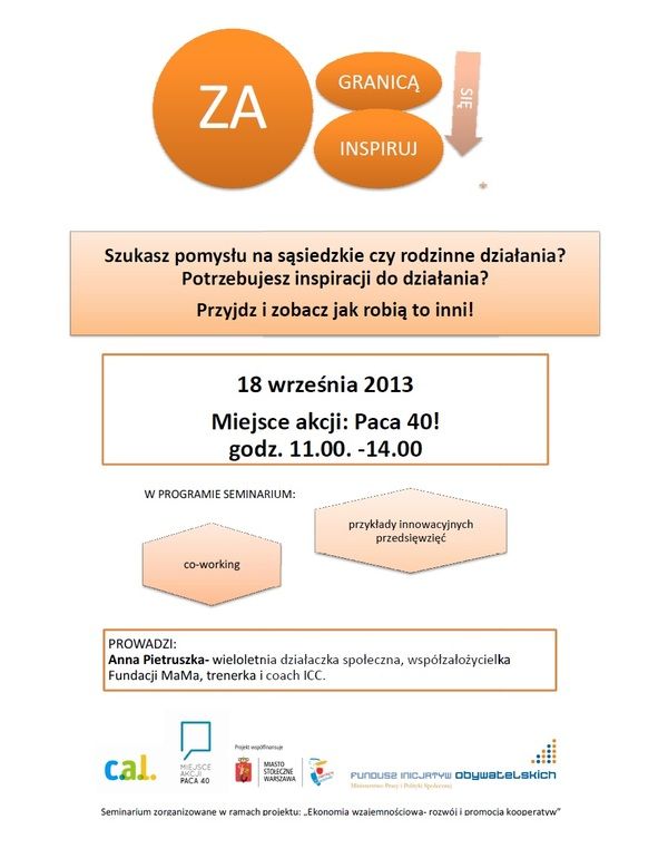 Seminarium zostało zrealizowane w ramach projektu "Ekonomia Wzajemnościowa - promocja i rozwój kooperatyw" dofinansowanego ze środków Programu Operacyjnego Fundusz Inicjatyw Obywatelskich.
