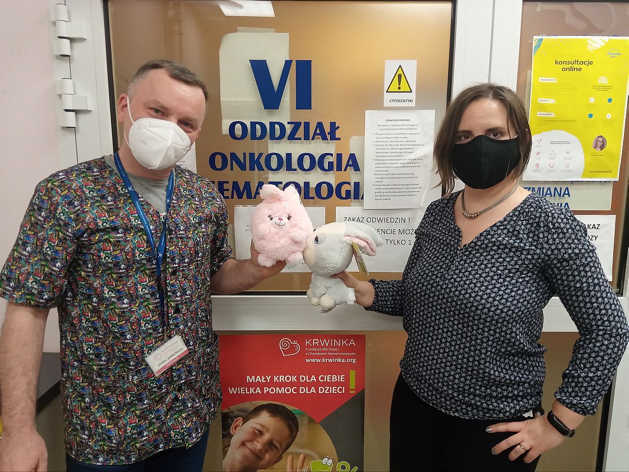Fundacja „Krwinka” obdarowała wszystkie dzieci obecne na oddziałach onkologicznych Uniwersyteckiego Centrum Pediatrii im. M. Konopnickiej w Łodzi. Obok wspomnianych maskotek, w paczkach znalazły się wielkanocne książki, malowanki, artykuły plastyczne oraz słodycze.