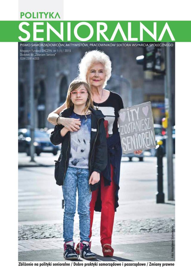 Fundacja ZACZYN przedstawia pierwszy numer pisma „Polityka Senioralna” – jedynego w Polsce magazynu eksperckiego poświęconemu społecznym wyzwaniom starzenia, strategiom na rzecz wsparcia seniorów, działaniom instytucji w projektowaniu polityki senioralnej na poziomie lokalnym i krajowym. Kwartalnik jest skierowany do samorządowców, urzędników, dziennikarzy, aktywistów organizacji pozarządowych, pracowników sektora wsparcia społecznego.