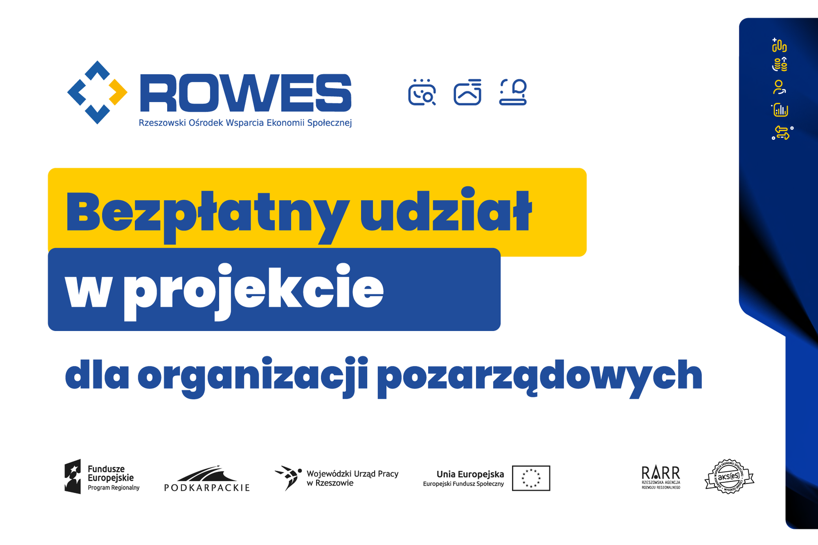 Zapraszamy do współpracy Koła Gospodyń Wiejskich, Stowarzyszenia, Fundacje, OSP i inne organizacje pozarządowe działające na terenie powiatów: strzyżowskiego, ropczycko - sędziszowskiego, dębickiego, mieleckiego, tarnobrzeskiego, miasta Tarnobrzeg, stalowowolskiego, kolbuszowskiego, niżańskiego, rzeszowskiego i miasta Rzeszów do BEZPŁATNYCH PROJEKTÓW „ROWES - wsparcie rozwoju sektora ekonomii społecznej w subregionie I” oraz „ROWES -wsparcie rozwoju sektora ekonomii społecznej w subregionie II”, realizowanych przez Rzeszowski Ośrodek Wsparcia Ekonomii Społecznej prowadzony przez Rzeszowską Agencję Rozwoju Regionalnego S.A.