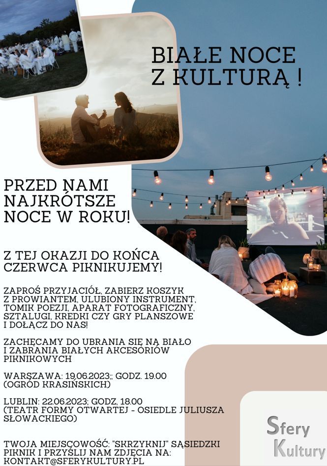 Pomysłodawcą przedsięwzięcia jest Inicjatywa Twórcza Sfery Kultury. Inicjatorzy zachęcają do podjęcia wyzwania, organizowania kameralnych spotkań we wszystkich miejscowościach, w których znajdą się amatorzy letniego relaksu z kreatywną nutą w tle. Zapraszają także do przesłania zdjęć z „białych pikników”, by wspomnienie Białych Nocy z Kulturą pozostało z nami na kolejne miesiące!