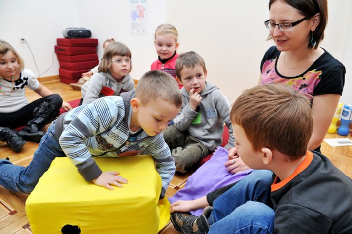 Nieobciążone niekoniecznie dobrymi doświadczeniami dorosłych maluchy z odwagą i zaciekawieniem przystąpiły do oswajania faktury. Ten dziwaczny zwierz siedzący w pudełku z otworem na dłoń pozwalał się dotykać i głaskać. Każdy chciał włożyć ręce do tajemniczego pudełka, aby poznać fakturę dotykając jej, chociaż przez chwilę. Dzięki podjęciu tego ryzyka odważne maluchy dowiedziały się, że faktura może być pofałdowana, gładka, szorstka, twarda lub miękka jak plastopianka, z której powstały później fakturzaste inicjały dzieci.