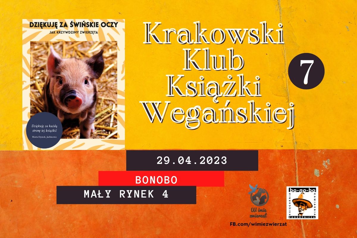W czasie spotkanie w Księgarni i Kawiarni Podróżniczej Bonobo przy Małym Rynku zebrane osoby dyskutowały o książce Dariusza Gzyry "Dziękuję za świńskie oczy. Jak krzywdzimy zwierzęta" (wydanej w 2018 r. przez Krytykę Polityczną). Gościem specjalnym był sam Autor książki, który - żartobliwie, rzecz jasna - na początku zapowiedział, że jeśli "zamierzacie tylko chwalić, to ja wychodzę". Dość ciężko jednak nie chwalić książki, która po prostu jest bardzo dobra. Poniżej opiszę kilka wątków, nad którymi się skupiono (chciałoby się rzec, iż momentami dywagowano, jednakże - wbrew pozorom - żaden z nich nie był nie na temat). Jak to bywało i na poprzednich spotkaniach KKKW książka była punktem wyjścia do dyskusji. Dyskusji krążącej wokół centralnego tematu książki – tragicznego losu zwierząt pozaludzkich różnych (wszystkich?) gatunków.