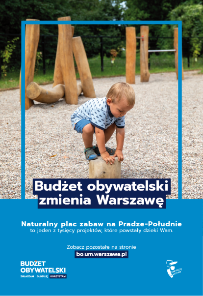 Budżet Obywatelski to proces decyzyjny, w ramach którego mieszkańcy decydują o tym, na co przeznaczyć część budżetu Warszawy. Warszawiacy, co roku wymyślają i zgłaszają projekty, a następnie wybierają w głosowaniu te, które zostaną zrealizowane. W ten sposób wspólnie decydują o tym, co powstanie w najbliższej okolicy, w kilku dzielnicach lub w całej Warszawie. Szczegóły dotyczące kolejnej, 9. edycji budżetu obywatelskiego wkrótce na https://um.warszawa.pl/waw/bo oraz na profilu Budżet obywatelski na Facebooku.