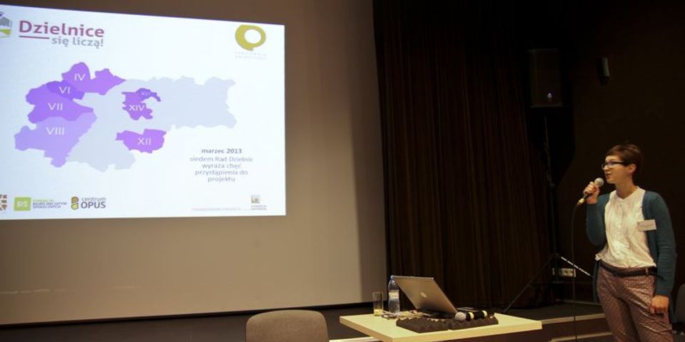 Kontaktu z mieszkańcami na różne sposoby szukali również przedstawiciele Stowarzyszenia Pracownia Obywatelska, które przeprowadziło pilotaż budżetu partycypacyjnego w trzech krakowskich dzielnicach. Agnieszka Matuszyńska-Dziewitek podzieliła się tymi doświadczeniami. Zwracała uwagę na problem braku zainteresowania, szczególnie ze strony młodych mieszkańców.