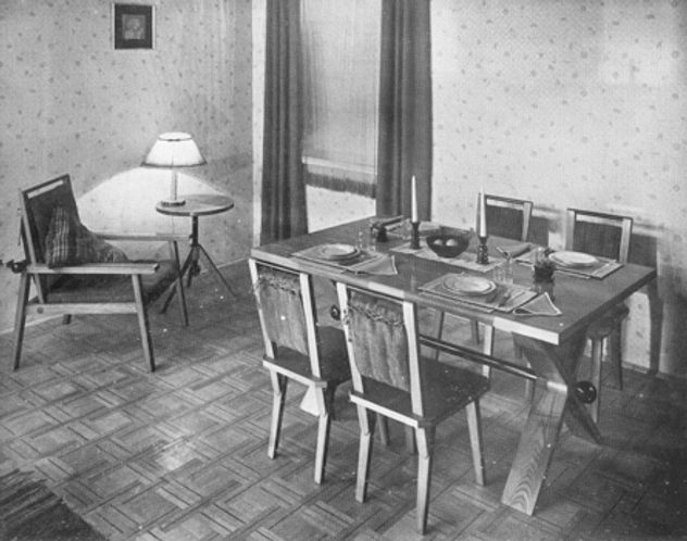 Kształtowanie kultury mieszkalnictwa szerokich warstw społecznych, nie zrealizowane w okresie międzywojennym, stało się realne po wojnie. Spółdzielnia „Ład” weszła wówczas w ścisłą współpracę z warszawskimi spółdzielniami mieszkaniowymi. W 1949 r. zaprezentrowała wnętrza i meble dla Warszawskiej Spółdzielni Mieszkaniowej na Mokotowie i na Kole, następnie także w osiedlu domków fińskich na Ujazdowie. W 1959 r. spółdzielnia zaprojektowała wyposażenie mieszkań w blokach na Osiedlu Młodych na Grochowie, Robotniczej Spółdzielni Mieszkaniowej. Pomysły spółdzielni spotkały się z dużym zainteresowaniem. Ze szczególną aprobatą został przyjęty projekt meblościanek Stanisława Kucharskiego, który zaproponował ergonomiczne wykorzystanie niewielkich przestrzeni pod szafy ścienne, dwustronne półki, pawlacze oraz schowki. Niestety, spółdzielnia nie potrafiła przełożyć dobrych pomysłów na efekt biznesowy i stworzyć seryjnej produkcji szaf i regałów ściennych, a realizację ładowskich pomysłów przejęły inne przedsiębiorstwa.