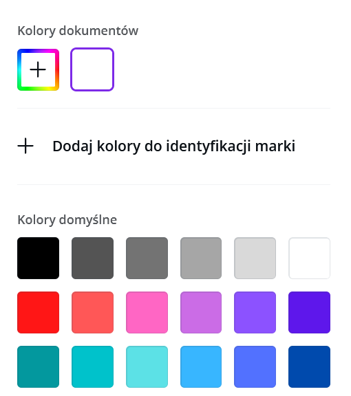 W Canvie możemy dodać kolory naszej marki. Dzięki temu tworzenie grafik będzie szybsze, a także będziemy mieć pewność, że wszystko jest zgodne z identyfikacją wizualną. W Canvie PRO możemy dodać nawet kilka palet, co jest przydatne, jeśli mamy kilka różnych projektów.